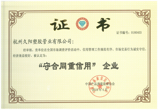 “守合同重信用”企业证书