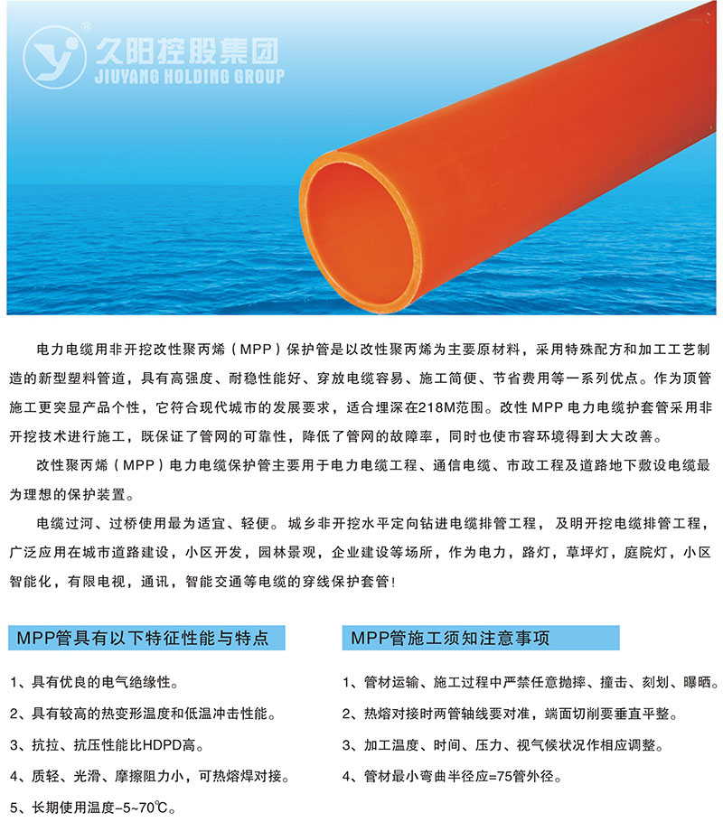 电力电缆用非开挖改性聚丙烯(MPP)保护管